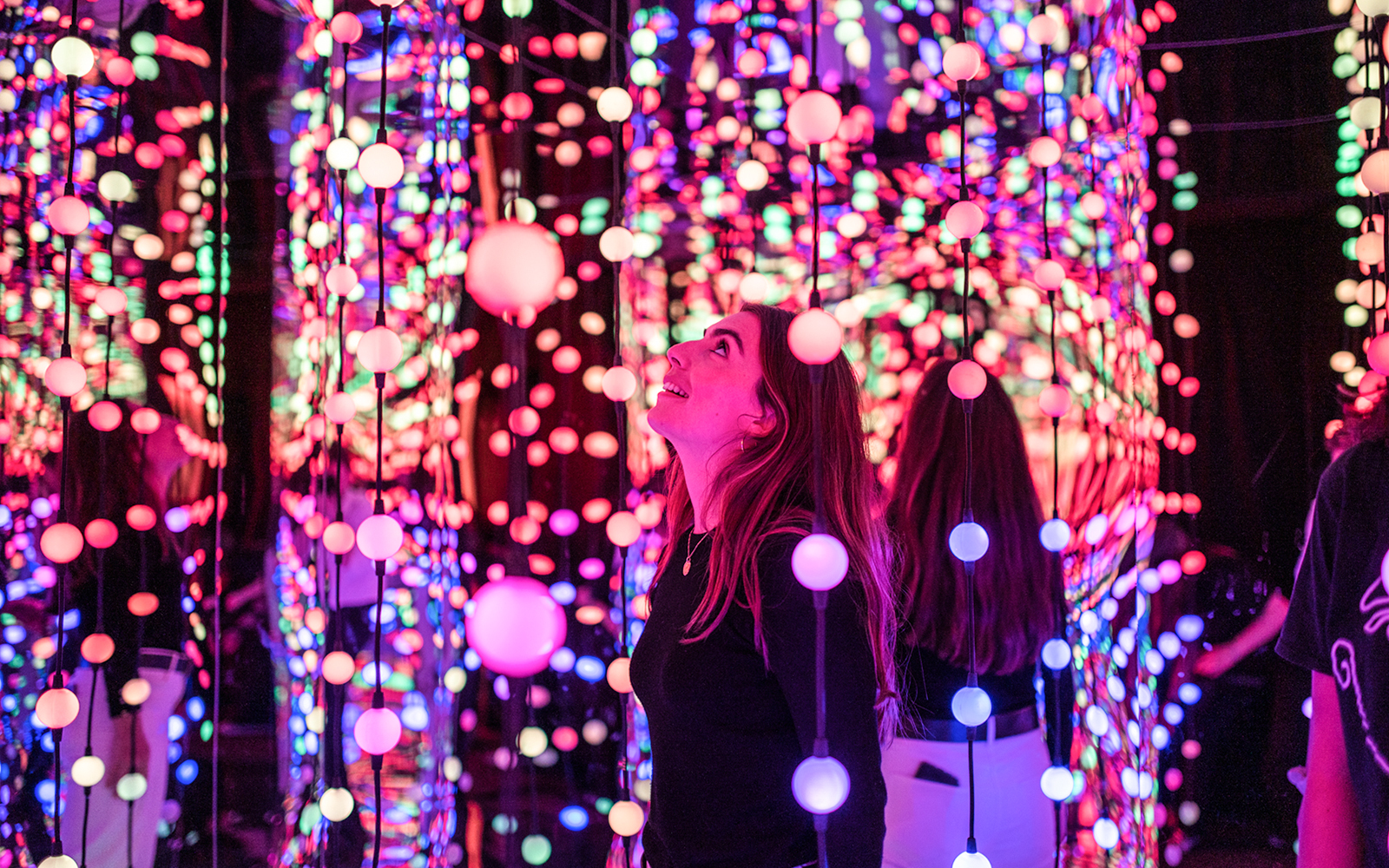 - Oásis cósmico: Uma experiência do tipo infinito repleta de luzes coloridas e várias superfícies refletoras. Uma ótima experiência de visualização e uma oportunidade ainda melhor para tirar fotos.