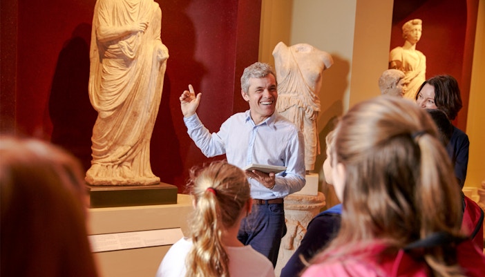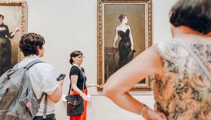 Guests engaging with a guide at the Metropolitan Museum of Art.